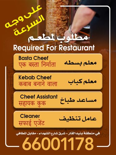 مطلوب للعمل بمطعم